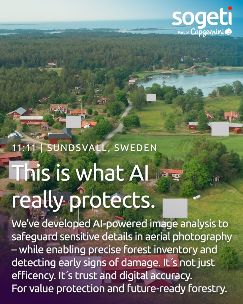 Vi har byggt en AI-lösning som hjälper skogsägare att digitalisera inventeringen av skog och samtidigt skydda känslig information i flygbilder. Hur då? Jo, AI stöttar hela tiden genom att maskera detaljer som personer och byggnader, samtidigt som man analyserar skador som toppbrott och granbarkborreangrepp och dessutom med högre noggrannhet än manuella kontroller.